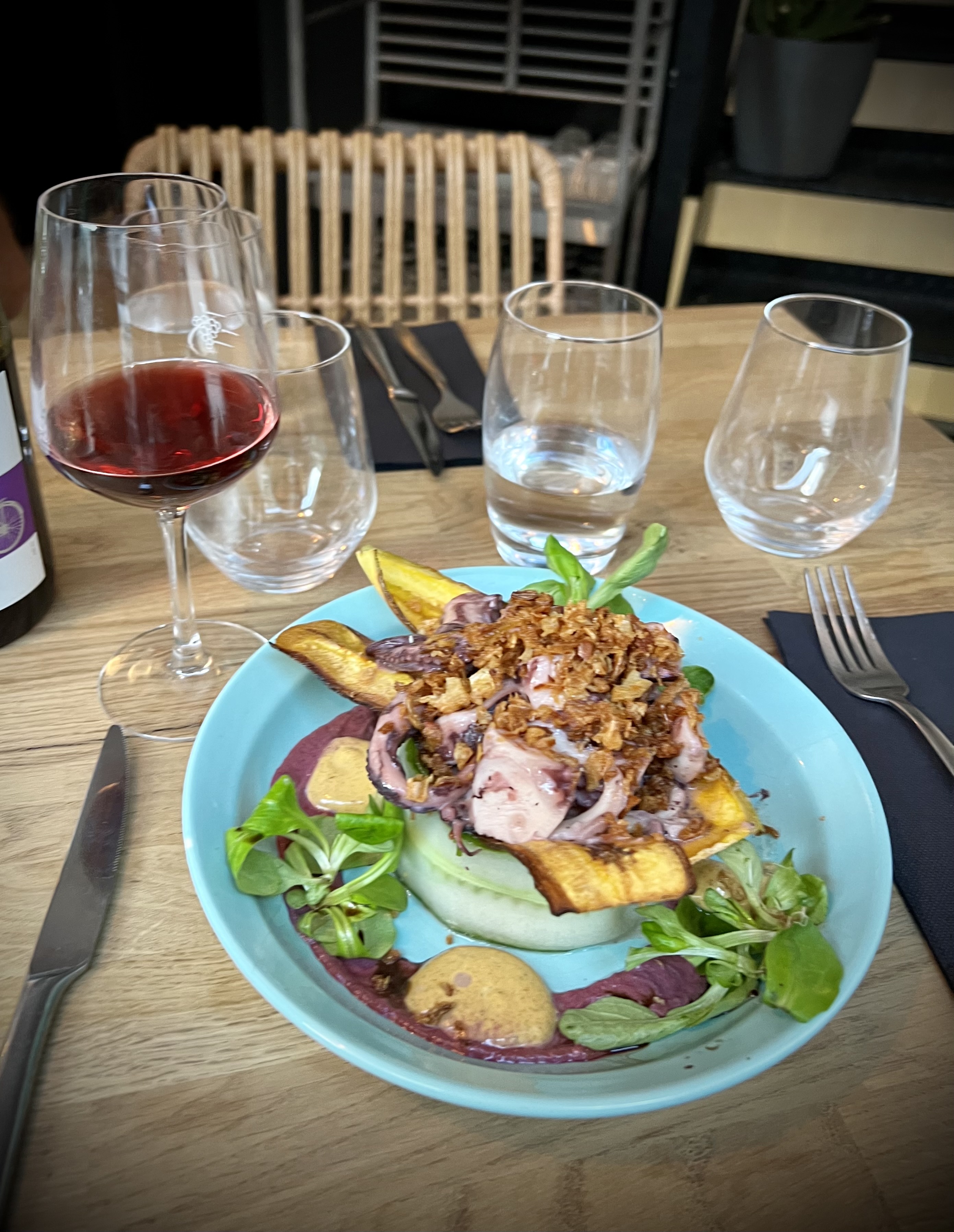 Posté le 26/04/2024 à 21:19"J’ai passé un très bon moment dans ce restaurant qui sert des plats raffinés avec un bon rapport qualité prix Le poulpe était fondant et délicieusement cuit et accompagné"
