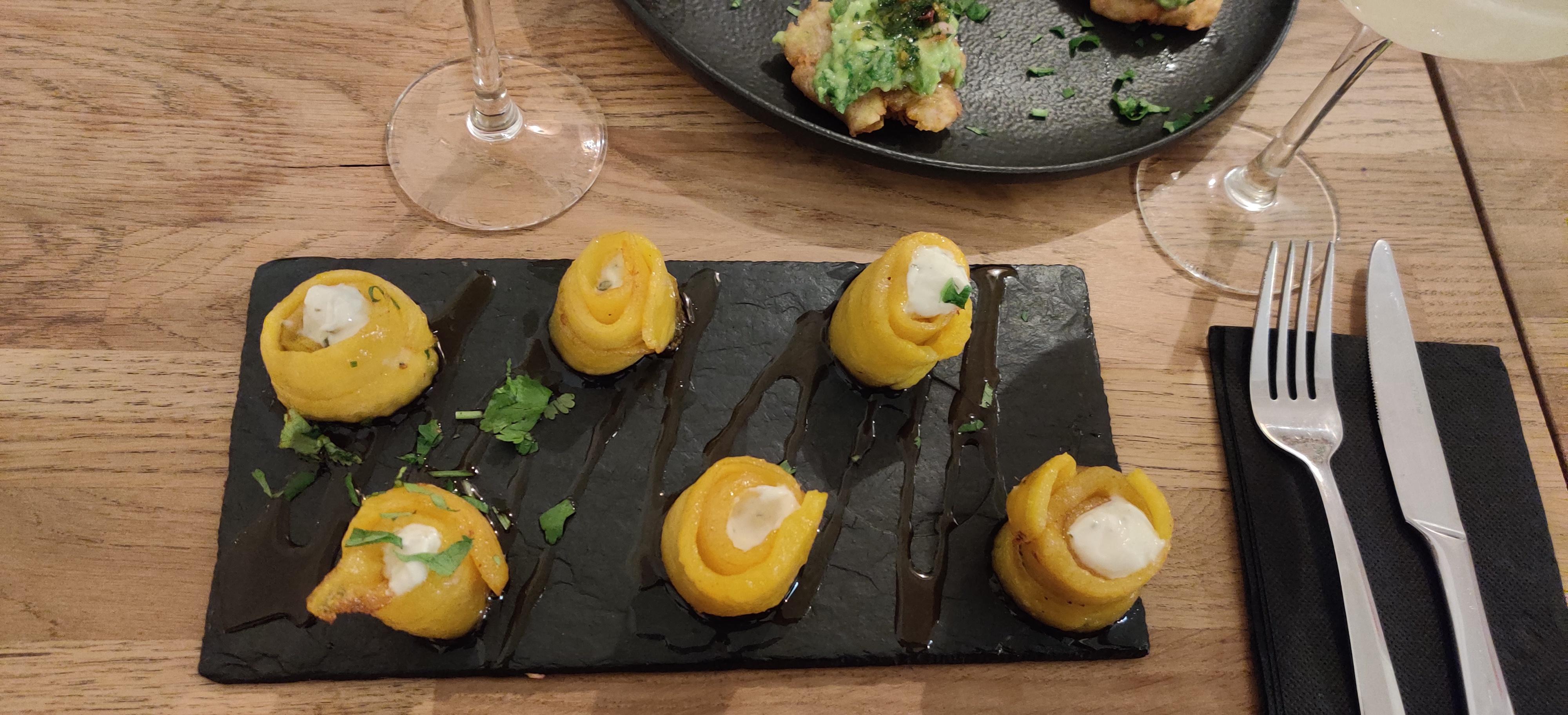 "L'accueil et le cadre sont vraiment magnifiques. J'adore la décoration épurée avec un mur en brique qui apporte de la chaleur tout comme le sourire de la serveuse. Tout est là pour passer un bon moment en dégustant de délicieux plats originaux et copieux. Ne pas manquer les tapas. Le cocktail légèrement parfumé au gingembre accompagné de tapas est une pure merveille qui fait voyager. Le plat principal au maïs était aussi très bon."