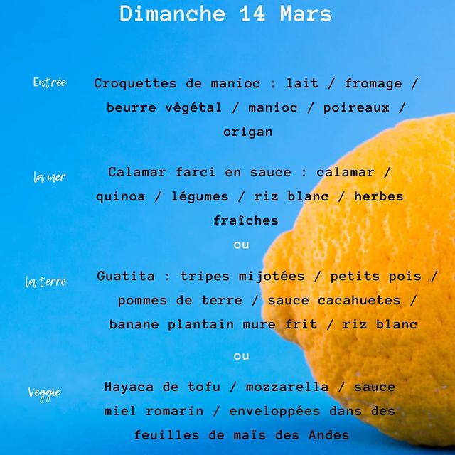 Posté le 17/05/2021 à 14:02"Merci à Erika qui nous a fait découvrir au travers de son ceviche la cuisine équatorienne ! Produits frais et de qualité ! Je recommande !"